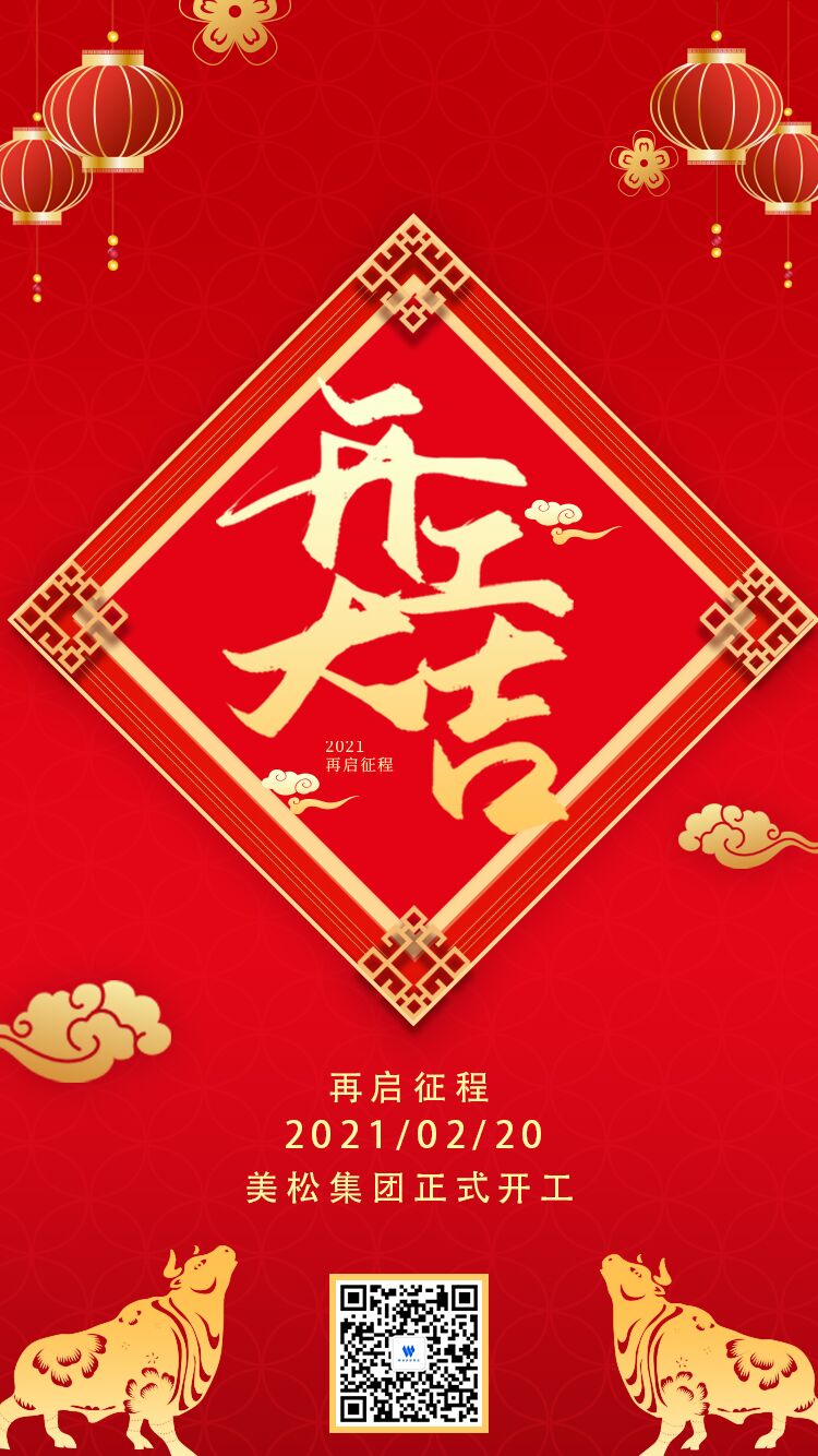 2021年2月20日,美松集團(tuán)正式開工的日子,董事長陳斌先生攜全體員工祝福全國人民牛年:新春吉祥!牛運(yùn)亨通!牛氣沖天!