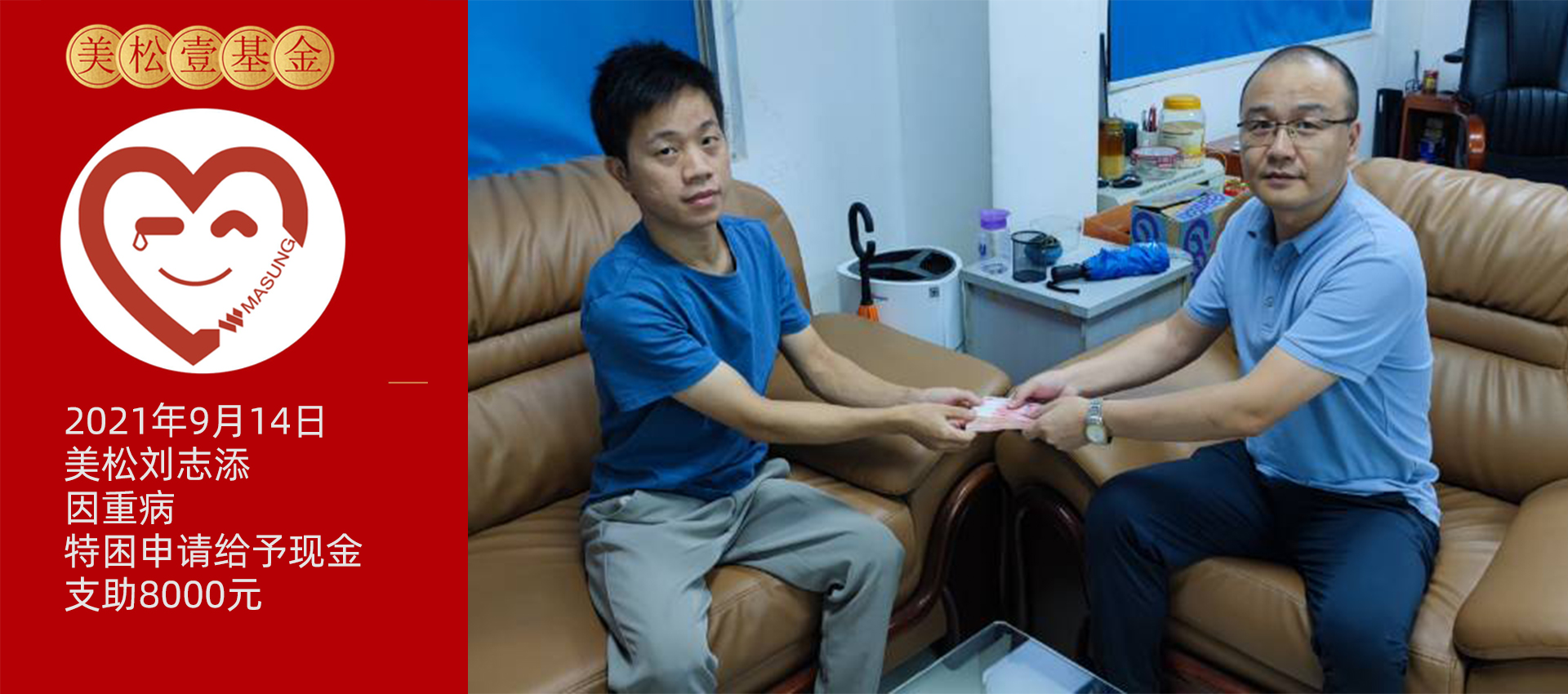2021年9月14日,光明工廠的同事劉志添因重病,特困申請,給予現(xiàn)金支助8000元,目前已經(jīng)出院康復(fù)上班。