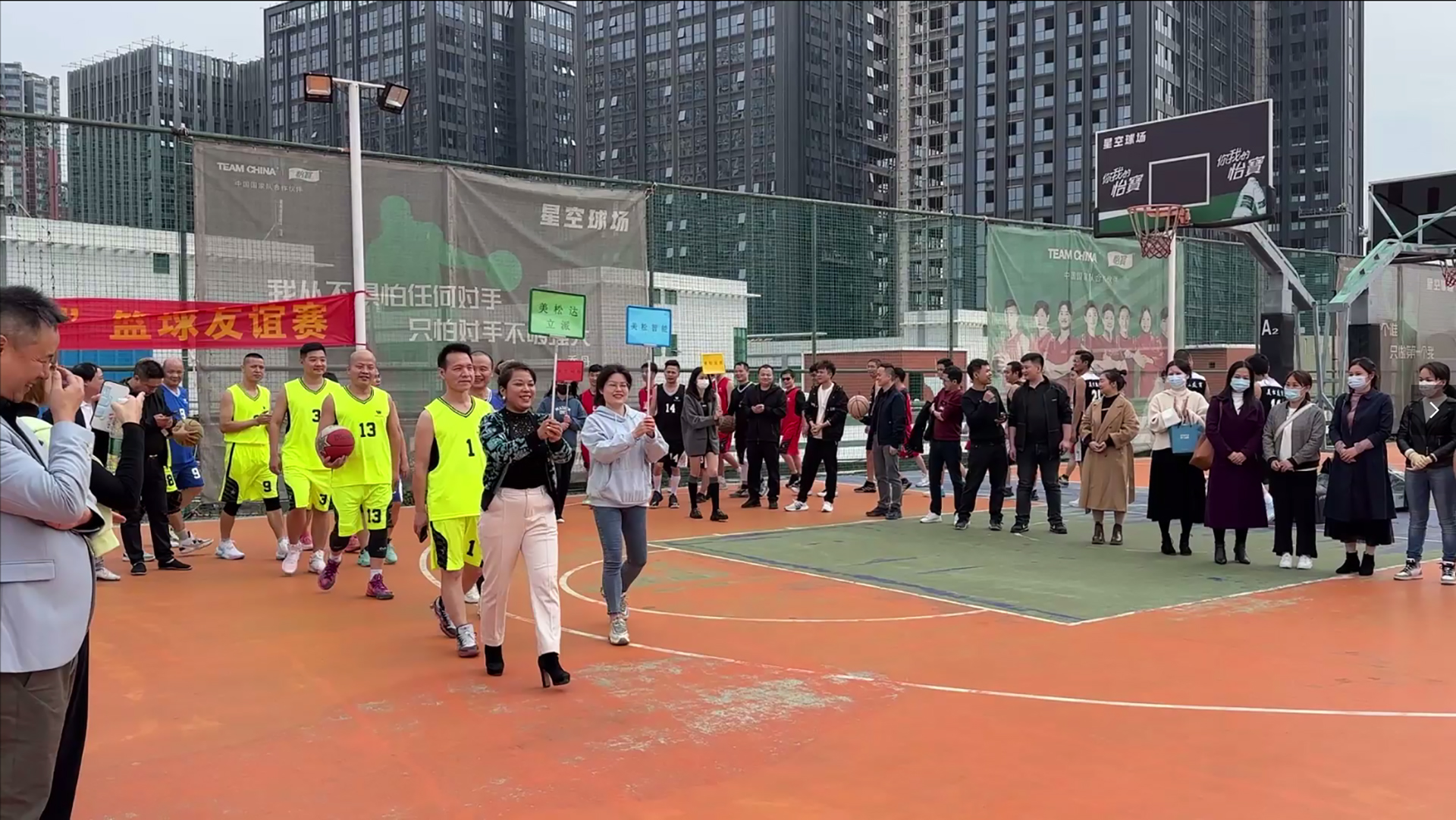 下午14:00,在總經(jīng)理廖偉先生的開幕致詞下,隨著主持人的一聲“第七屆美松杯籃球賽正式開始”,分別由美松科技、美松智能、美松達&立派、美松友商組成的4支球隊,運動員踏著《義勇軍進行曲》入場,并宣誓發(fā)言。其中美松友商隊運動員代表天夢者總經(jīng)理鐘文先生,集友商隊各運動員代表所屬公司名組成的激情滿滿的賦詩一首: