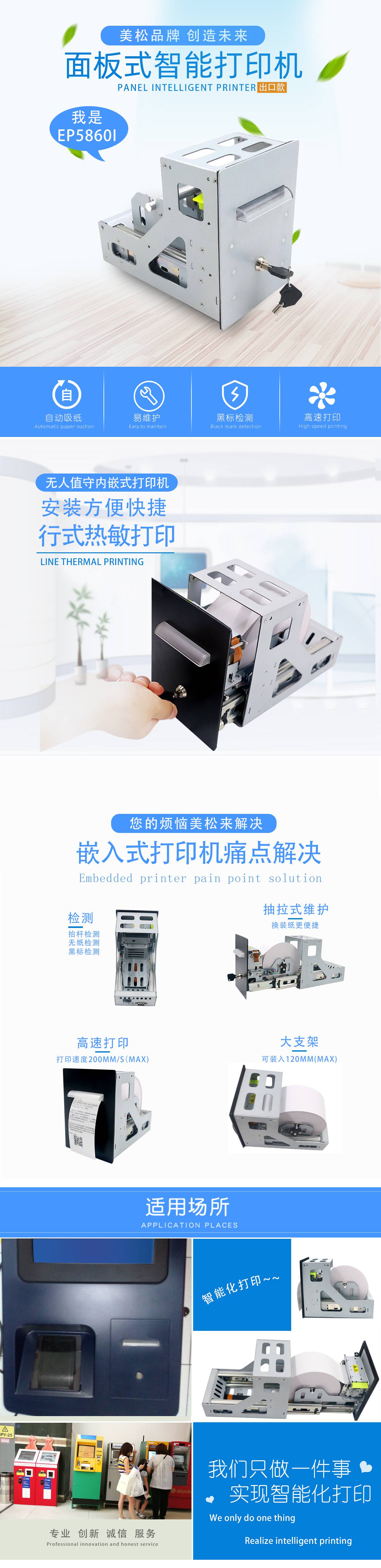 微型打印機(jī)介紹:與80mm微型熱敏打印機(jī)不同,這款是58MM的微型打印機(jī),型號(hào)為EP5860I微型打印機(jī)是一款58mm嵌入式微型打印機(jī),不同于其他58MM打印機(jī),這款嵌入式微型打印機(jī)配有開(kāi)關(guān)鎖鑰匙,放心應(yīng)用,只需要簡(jiǎn)單安裝就能實(shí)現(xiàn)打印功能的打印模塊,嵌入在不同的終端設(shè)備,例如加油站、餐飲收銀機(jī)、排隊(duì)繳費(fèi)機(jī)等,微型熱敏打印機(jī)是儀器儀表,超級(jí)市場(chǎng),便利店,郵政,銀行,煙草專(zhuān)賣(mài),公用事業(yè)抄表,移動(dòng)警務(wù)系統(tǒng),移動(dòng)政務(wù)系等行業(yè)的自助終端打印設(shè)備。