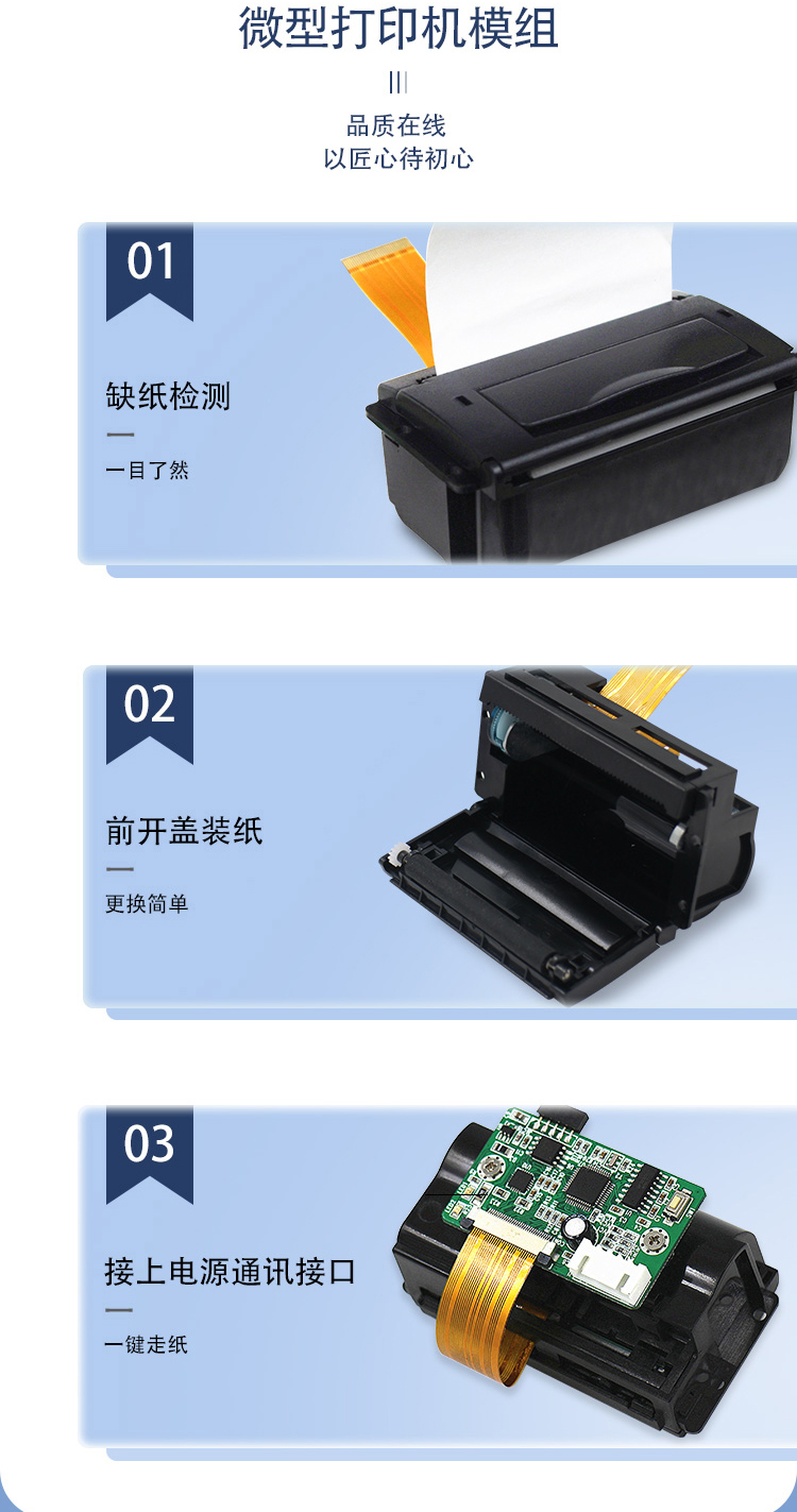 此模組的一大特色就是ALL-IN-ONE的概念,控制板與機芯完全結合為一體,大大節(jié)省了模組的空間,極大地方便了模具的開發(fā)設計。應用于充電樁打印機領域;手持移動設備;ERC/金融POS;防火報警控制器;醫(yī)療設備;測量儀器;車載記錄儀等領域。