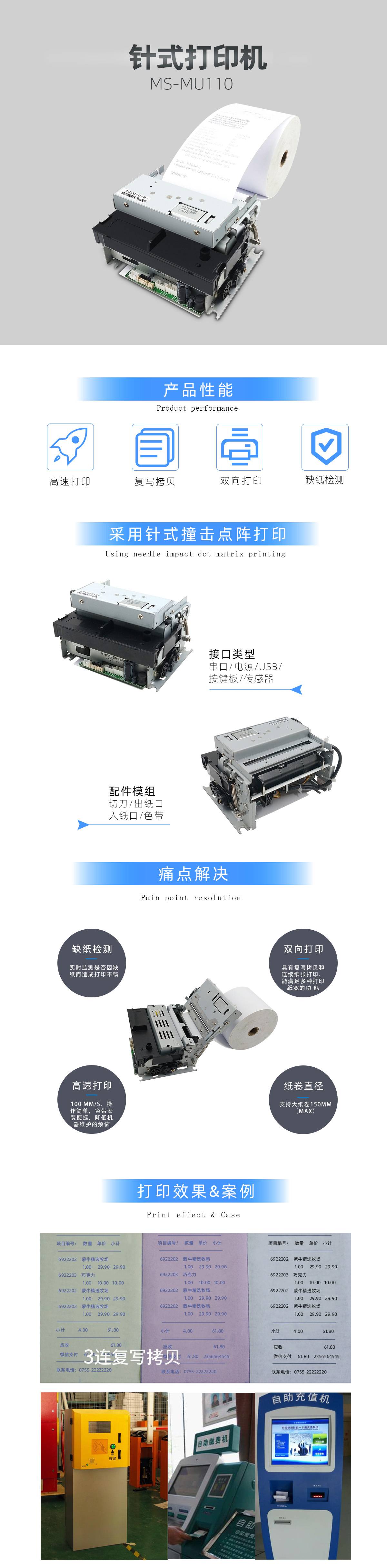 MS-MU110打印一體機(jī)是由原裝愛(ài)普生M-U110針式打印機(jī)機(jī)芯,與公司自主研發(fā)的針式打印機(jī)控制主板相結(jié)合的一款打印一體機(jī)MS-MU110,是一種針式撞擊點(diǎn)陣打印方式的打印機(jī),可靠性強(qiáng),打印速度快,具有復(fù)寫拷貝和連續(xù)紙張打印的功能,控制板結(jié)構(gòu)小巧,操作簡(jiǎn)單,色帶安裝便捷,降低機(jī)器維護(hù)的煩惱。