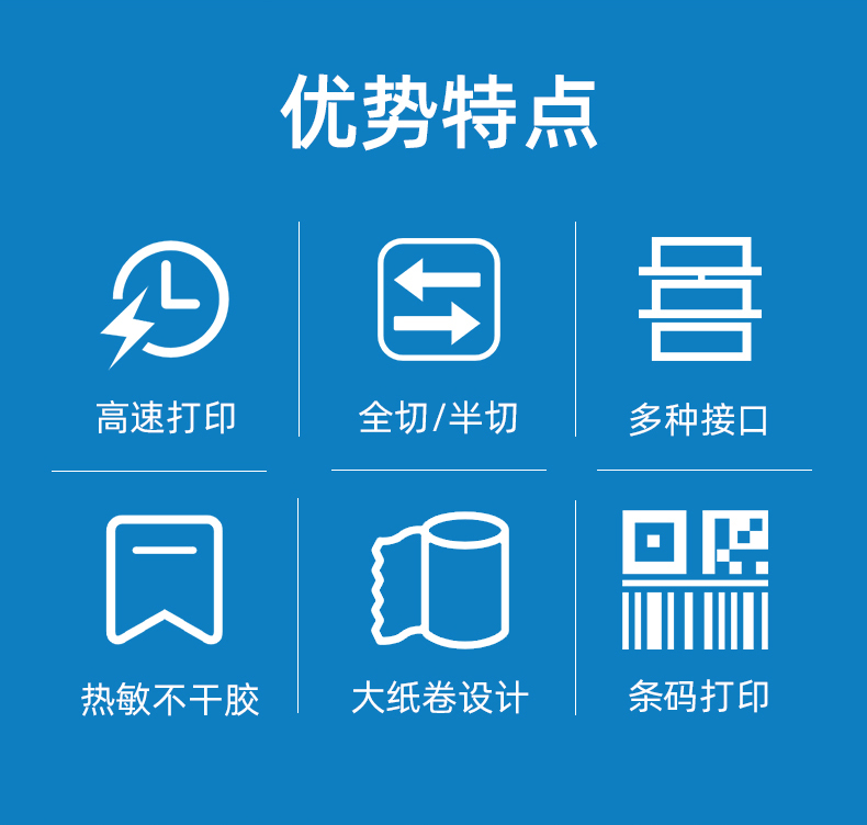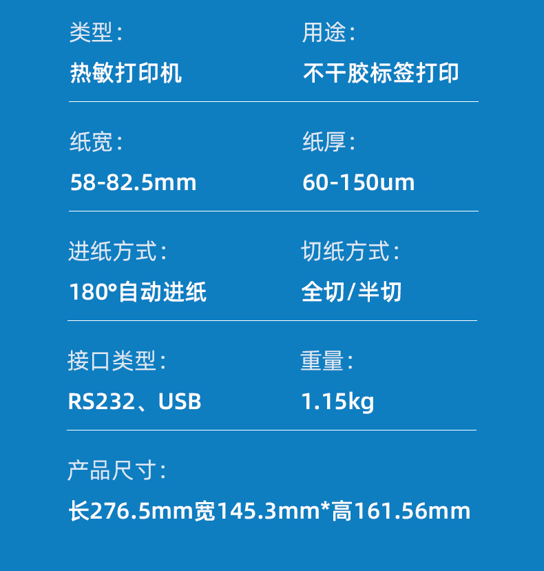 美松MASUNG自主研發(fā)熱敏不干膠打印機(jī) 1.紙卷支架/主軸安裝方式多樣,打印機(jī)后端上下旋轉(zhuǎn)180°安裝 2.高速熱敏打印(250mm/s(max)) 3.條碼打印功能 4.帶有拽紙、堵紙器檢測(cè)狀態(tài) 5.帶有照明擋板出紙嘴 6.多樣傳感器協(xié)助控制