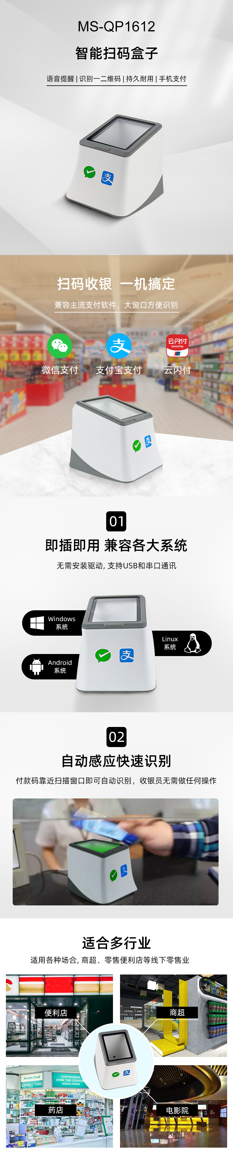 3.掃碼成功語音播報 ,解放收銀員,避免漏單