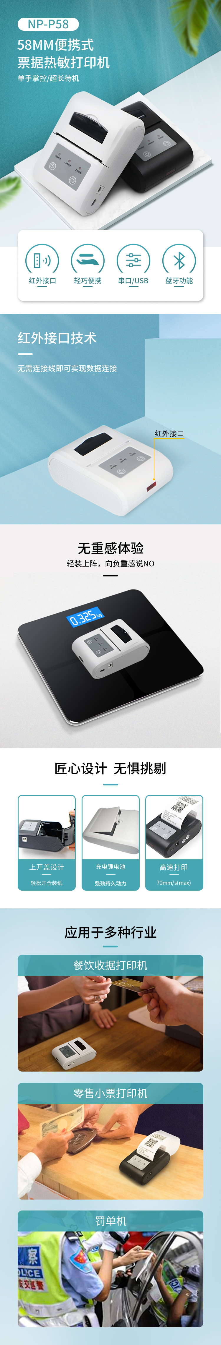 1.支持多種一維條形碼&二維碼功能的打印 2.支持GB18030漢字庫,可高速打印漢字,位圖打印 3.特殊支持紅外紅外(雅培紅外協(xié)議)接口 4.單手掌控,便攜性極好