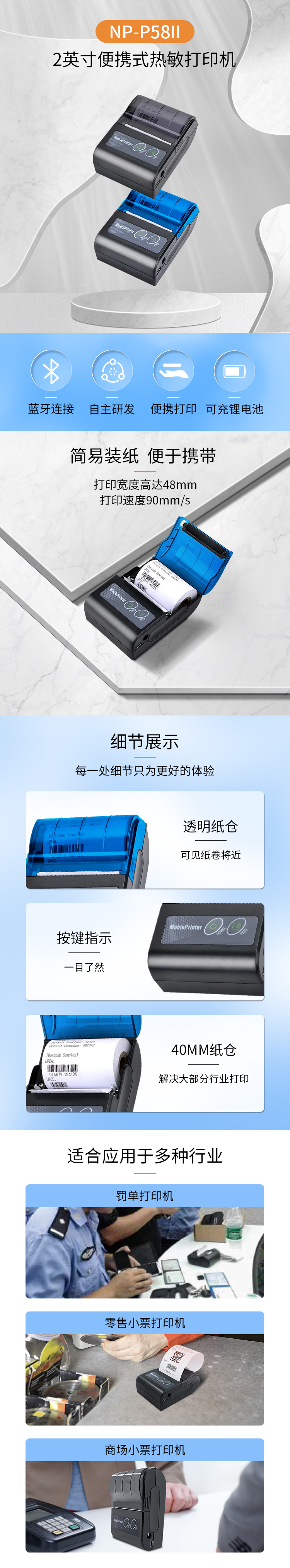 1.便攜式票據(jù)打印機(jī) 2.超輕、體積小、易裝紙、易攜帶 3.無(wú)線藍(lán)牙連接