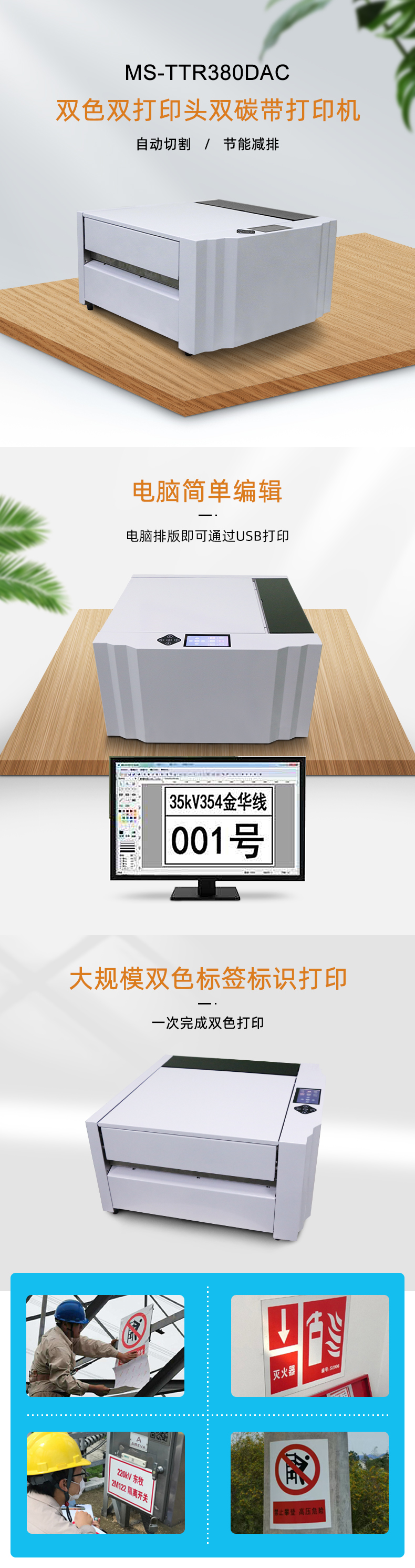 美松MASUNG自主研發(fā)熱轉(zhuǎn)印雙色標(biāo)識(shí)牌打印機(jī) 1.打印大幅面標(biāo)示牌,且自動(dòng)切割 2.無需制版,電腦排版完通過USB打印,方便快捷 3.碳帶熱轉(zhuǎn)印方式打印,文字清晰耐刮永不褪色 4.支持PVC+貼合鋁箔復(fù)合材料、PVC標(biāo)識(shí)貼紙材料等打印 5.熱轉(zhuǎn)印打印防水防曬耐腐蝕,經(jīng)久耐用