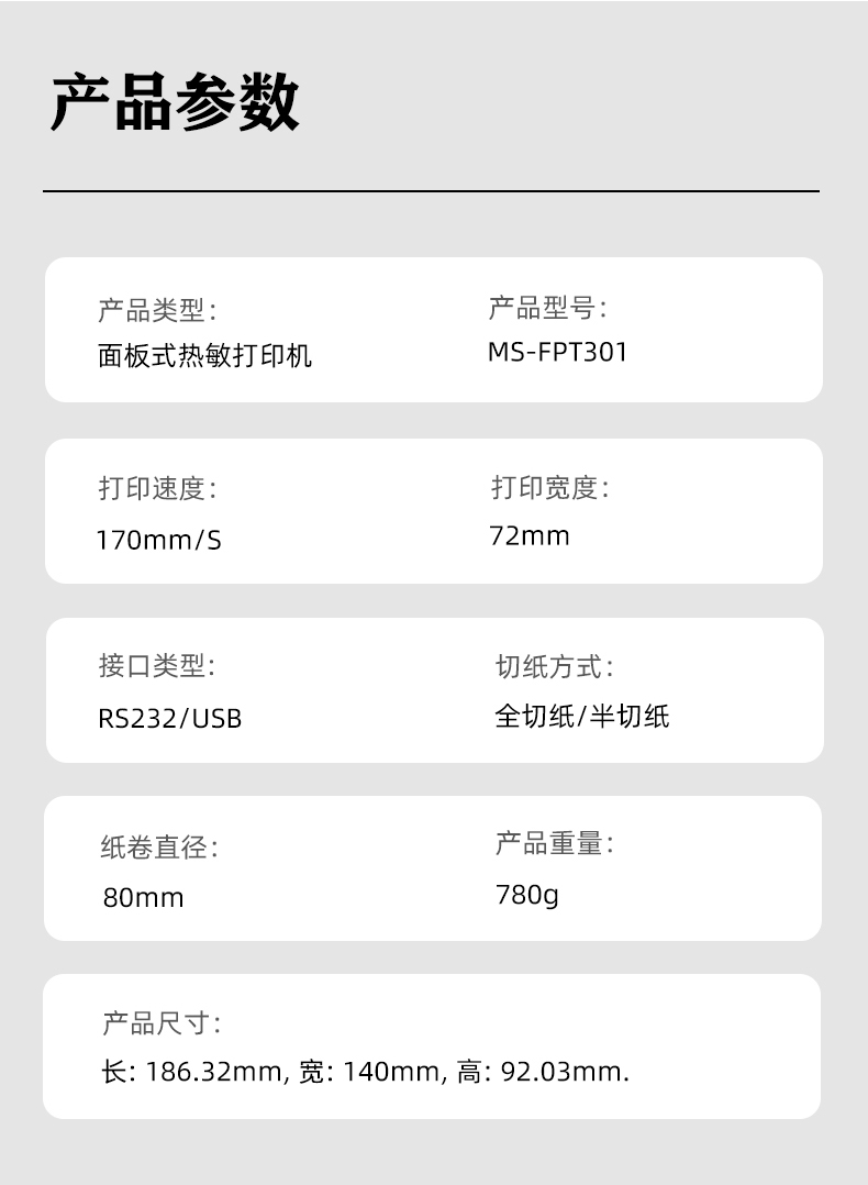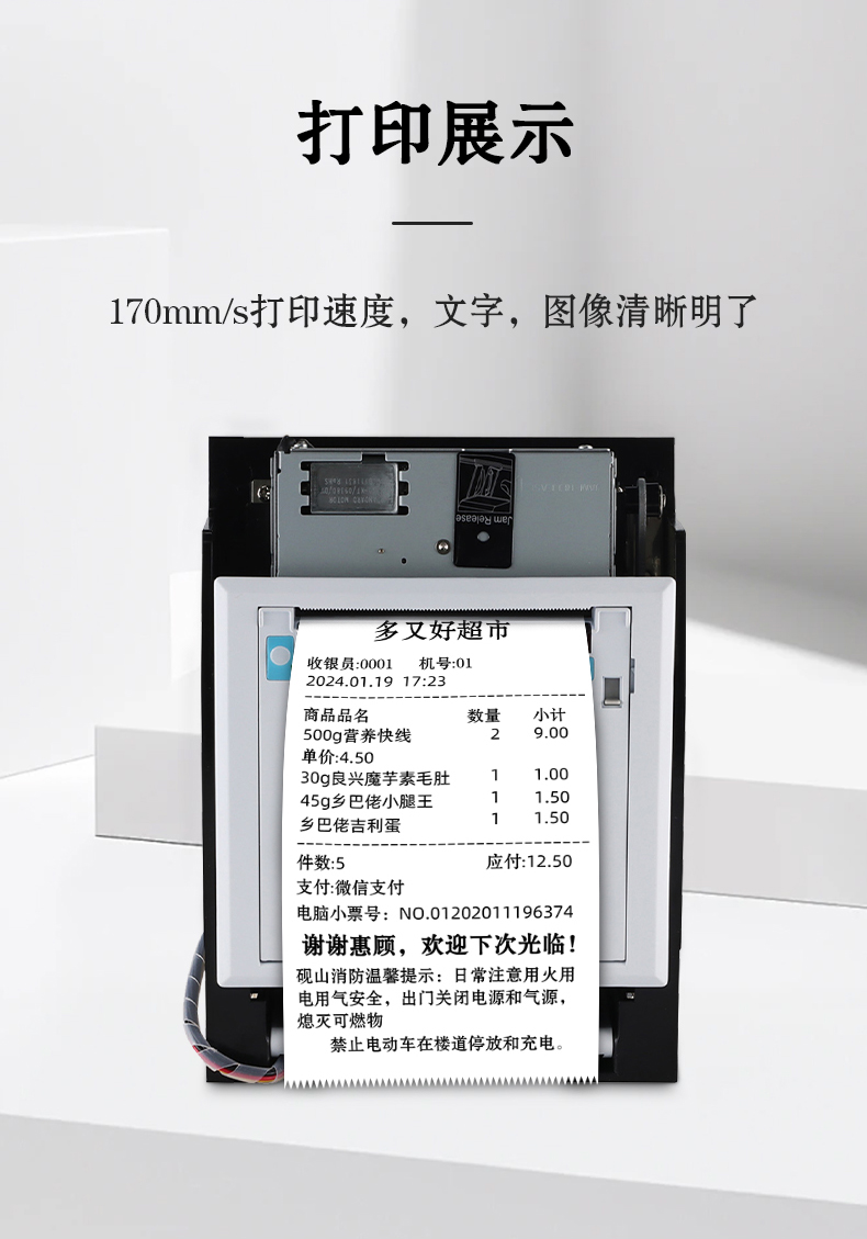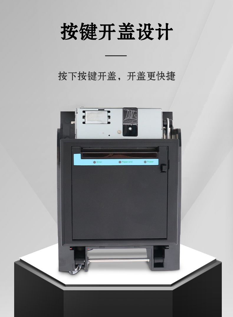 1.超薄機(jī)身設(shè)計(jì),專(zhuān)用于高度集成的終端服務(wù)設(shè)備 2.紙倉(cāng)最大化設(shè)計(jì),80*80大紙卷,避免頻繁換紙 3.開(kāi)蓋方式多樣化:按鍵,鑰匙和電子鎖開(kāi)蓋 4.前維護(hù)式,不需要打開(kāi)機(jī)柜換紙 5.分為有邊框和無(wú)邊框,無(wú)邊框更易嵌入在終端服務(wù)設(shè)備