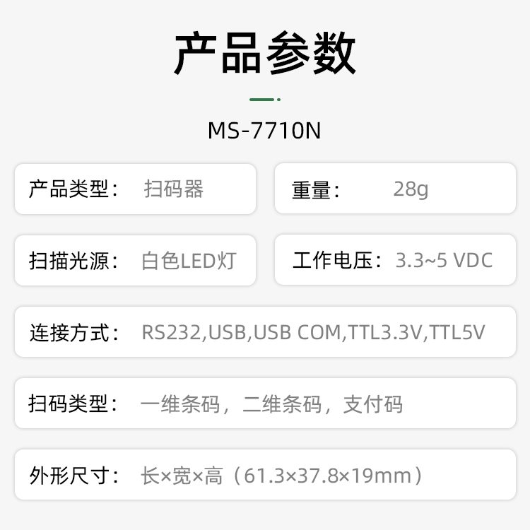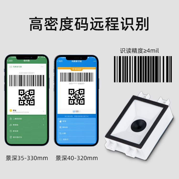 兼具一維/二維碼;紙質(zhì)和手機(jī)碼掃描 超薄19mm,窗口4cm*3cm更宜集成 漫反射補(bǔ)光 高集成度,集成蜂鳴器,補(bǔ)光燈,端子接口在一塊板上,更穩(wěn)定 3.6-6V寬電壓設(shè)計(jì),ESD保護(hù)電路 OCR身份證識(shí)讀(選配)