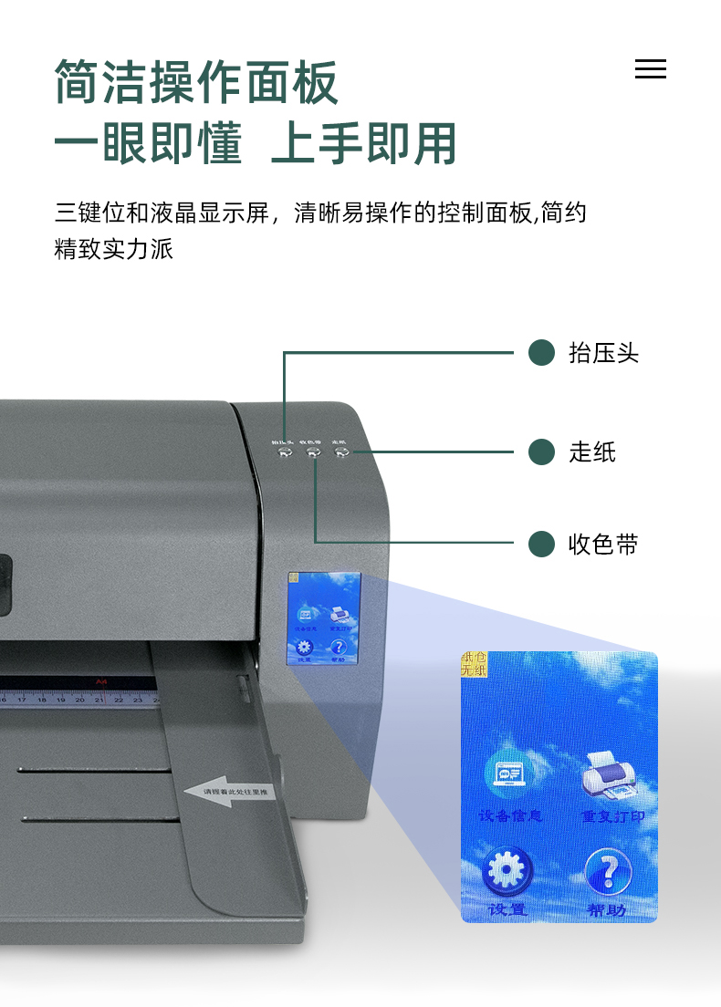 7.抬壓頭設(shè)計,換碳帶操作簡單快捷,非常適合在票務(wù)中使用。
