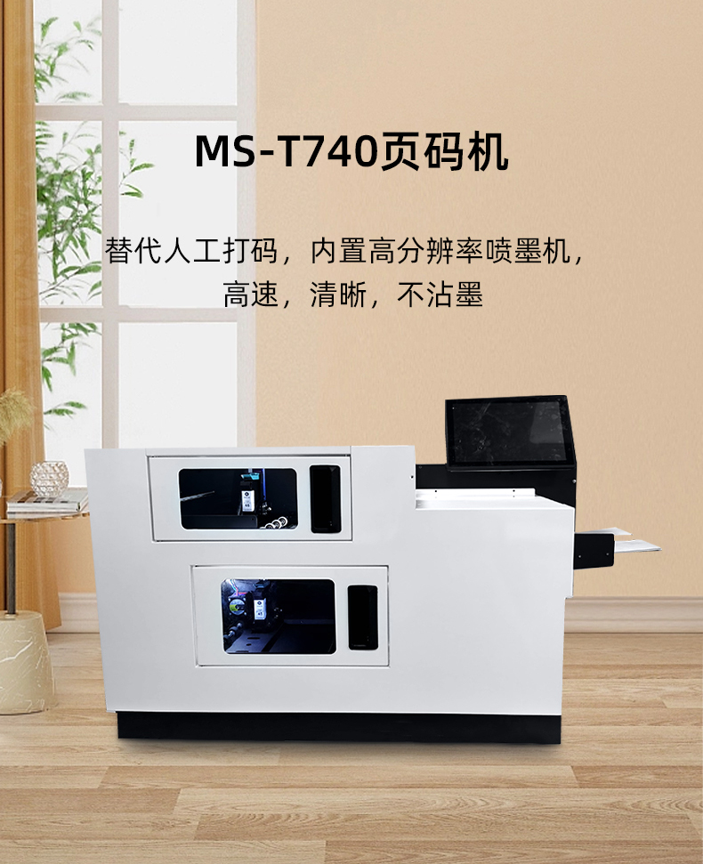 MS-T740頁(yè)碼機(jī) 替代人工打碼,內(nèi)置高分辨率噴墨機(jī),高速,清晰,不沾墨 可觸屏的電腦具有高速處理器,DDR3L 8GB內(nèi)存、SSD128G硬盤、電容式高亮觸摸屏、預(yù)留網(wǎng)口、USB、COM口等 光盤存儲(chǔ)刻錄專業(yè)處理軟件 處理過(guò)的文件通過(guò)內(nèi)置軟件可輕松制成光盤或存儲(chǔ)至指定位置。 Ai智能識(shí)別