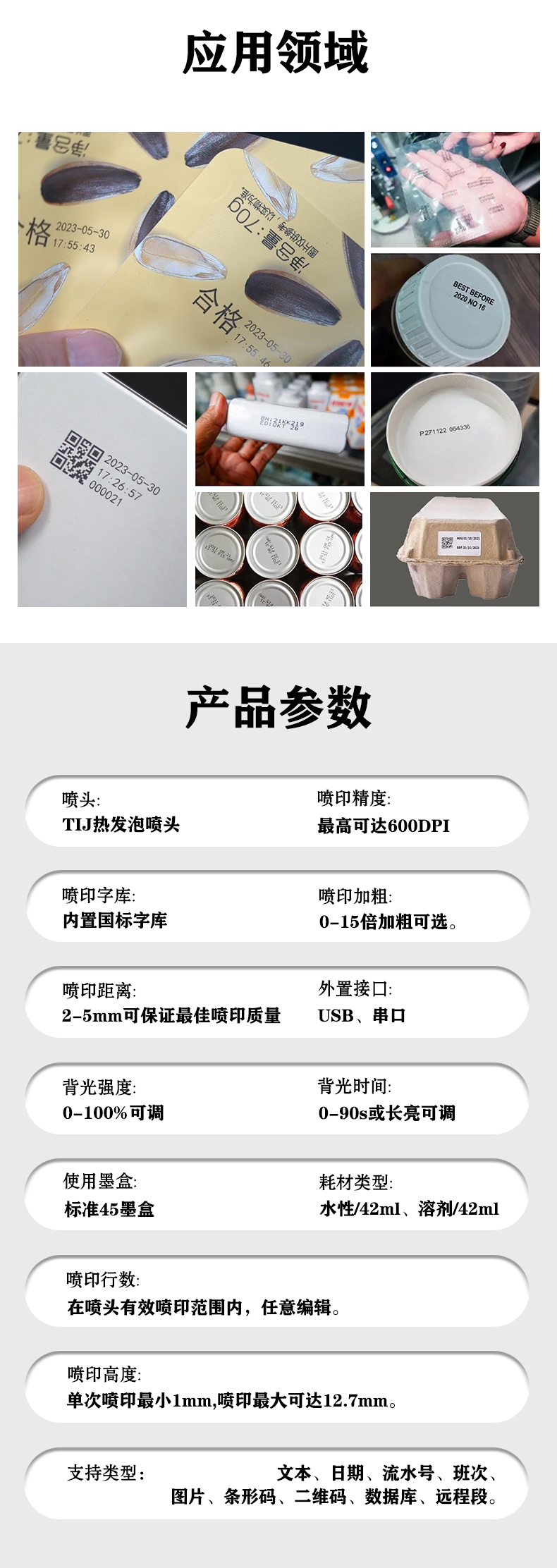 7、支持可變數(shù)據(jù)噴印(可選),可通過U盤,rs232,導(dǎo)入數(shù)據(jù)