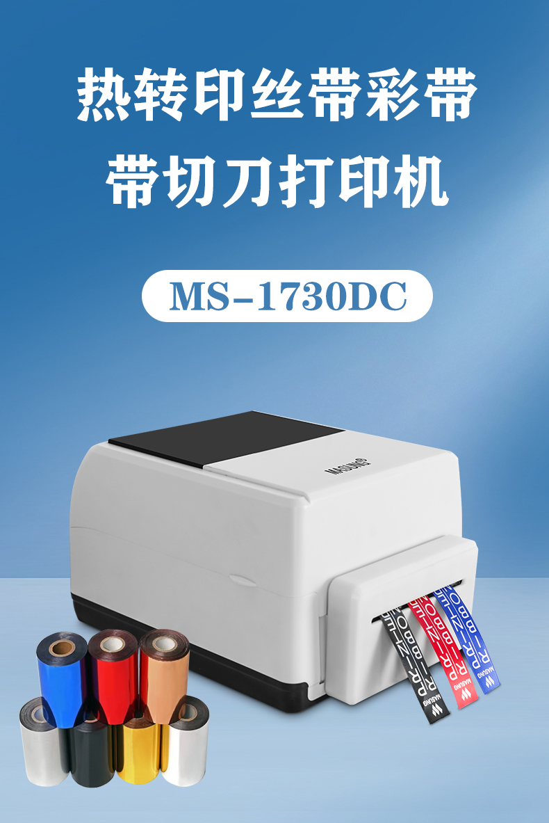 MS-1730DC_桌面式絲帶打印機是由美松自主研發(fā)的一款絲帶彩帶飄帶打印機,MS-1730DC的絲帶寬度為最小25mm,最大寬度為118mm,可適用的絲帶彩帶范圍廣泛,應用于禮物包裝絲帶,節(jié)日活動絲帶等領域,MS-1730DC帶有自動切刀,可進行彩帶和絲帶的快速切割,切刀更快且無殘留