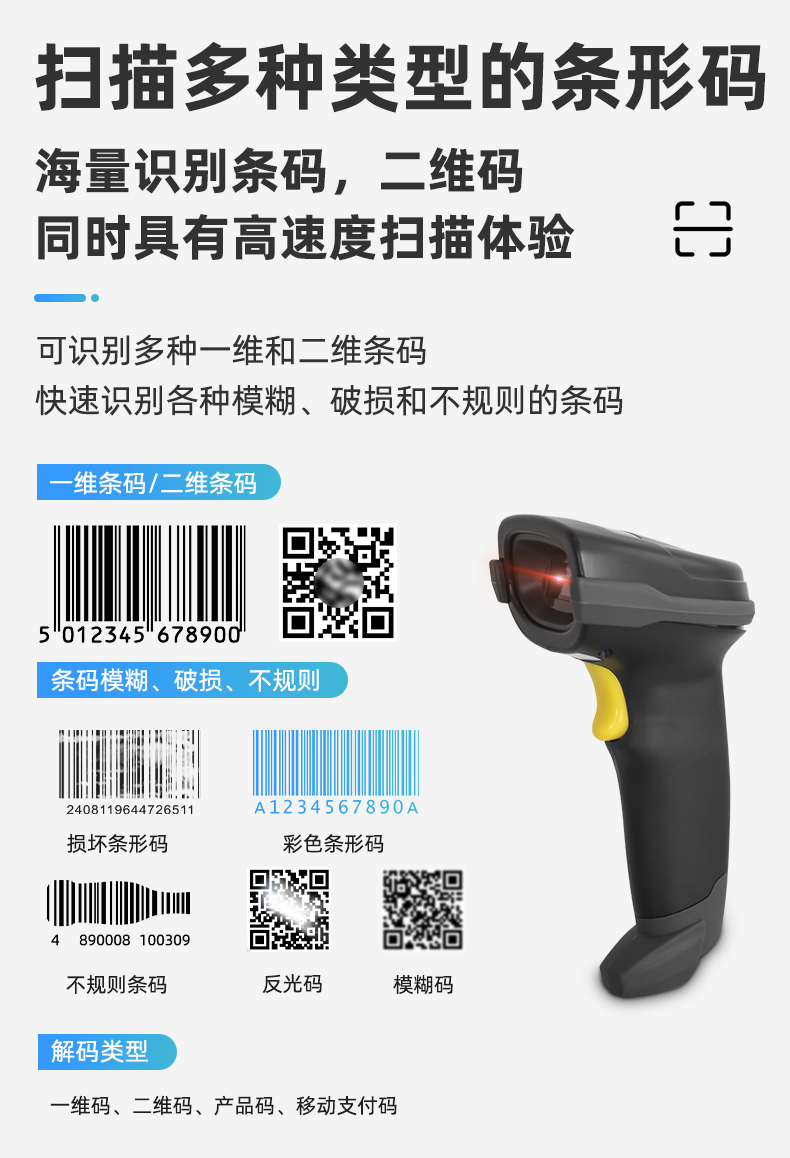 全局高速解碼技術(shù) 支持一維和二維碼 支持手機和紙質(zhì)條碼 經(jīng)典人體工學設(shè)計 選配支架解放雙手 產(chǎn)品特點: 全局高速解碼技術(shù) 采用自主研發(fā)的核心技術(shù),極速響應(yīng), 支持快速開發(fā)和定制需求 采用二維掃描技術(shù) 兼容一維碼和二維碼的讀取