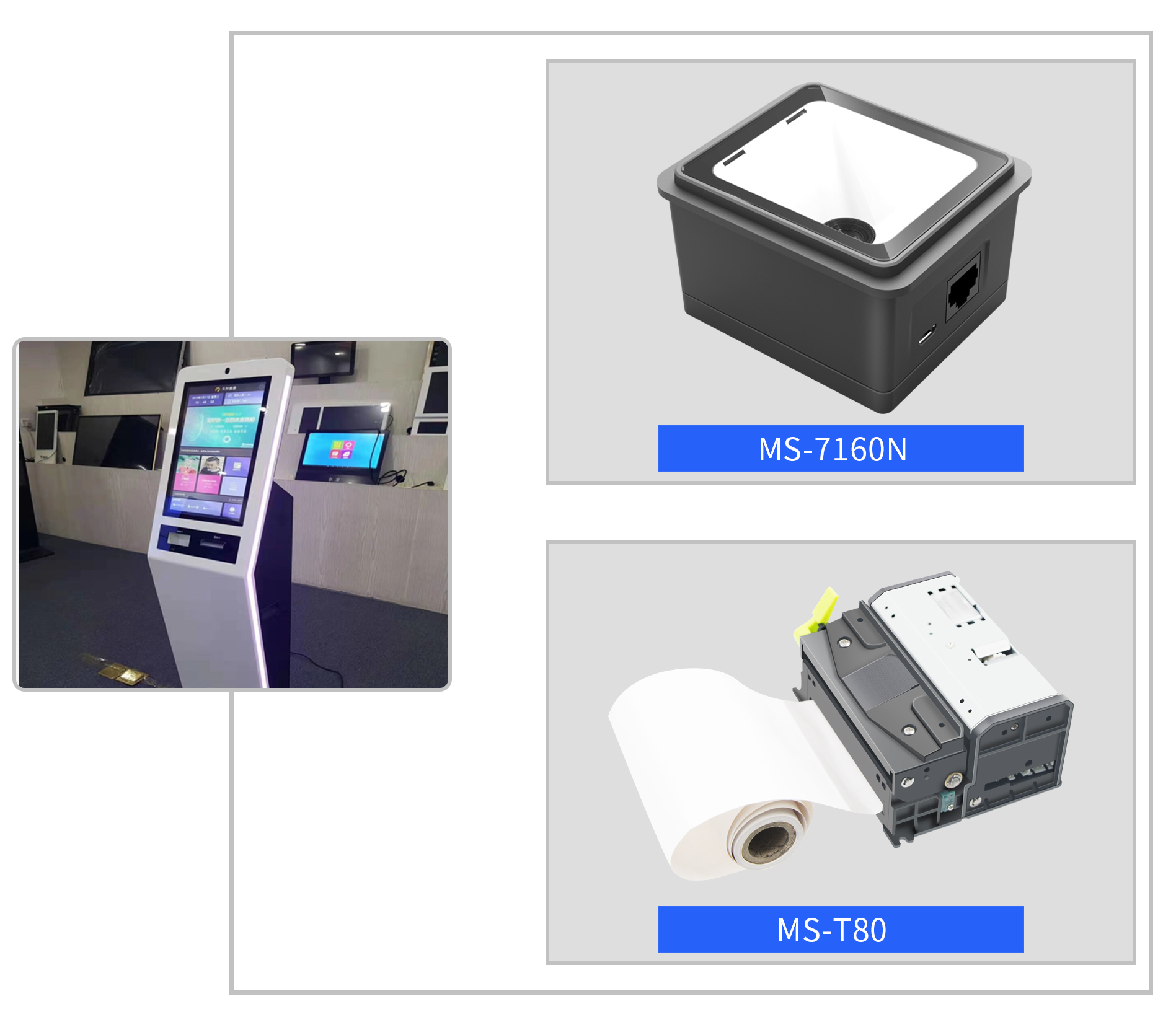 本期美松自主研發(fā)生產(chǎn)的明星打印產(chǎn)品MS-T80/MS-D245,它是一種新型行式熱敏打印機,擁有自動進紙、自動切紙、黑標檢測、紙將盡、防卡紙等功能。以及明星掃描產(chǎn)品MS-7160N,它是一款多種接口、大視角影像感光的嵌入式讀碼器。助力互聯(lián)網(wǎng)+快剪理發(fā),大大節(jié)省人工管理成本。美松攜手“快剪”品牌巨頭開發(fā)了預(yù)約、排號、掃描、售票、打印等系統(tǒng),用戶直接通過手機預(yù)約剪發(fā),即時查看排隊狀況,節(jié)省等待時間。