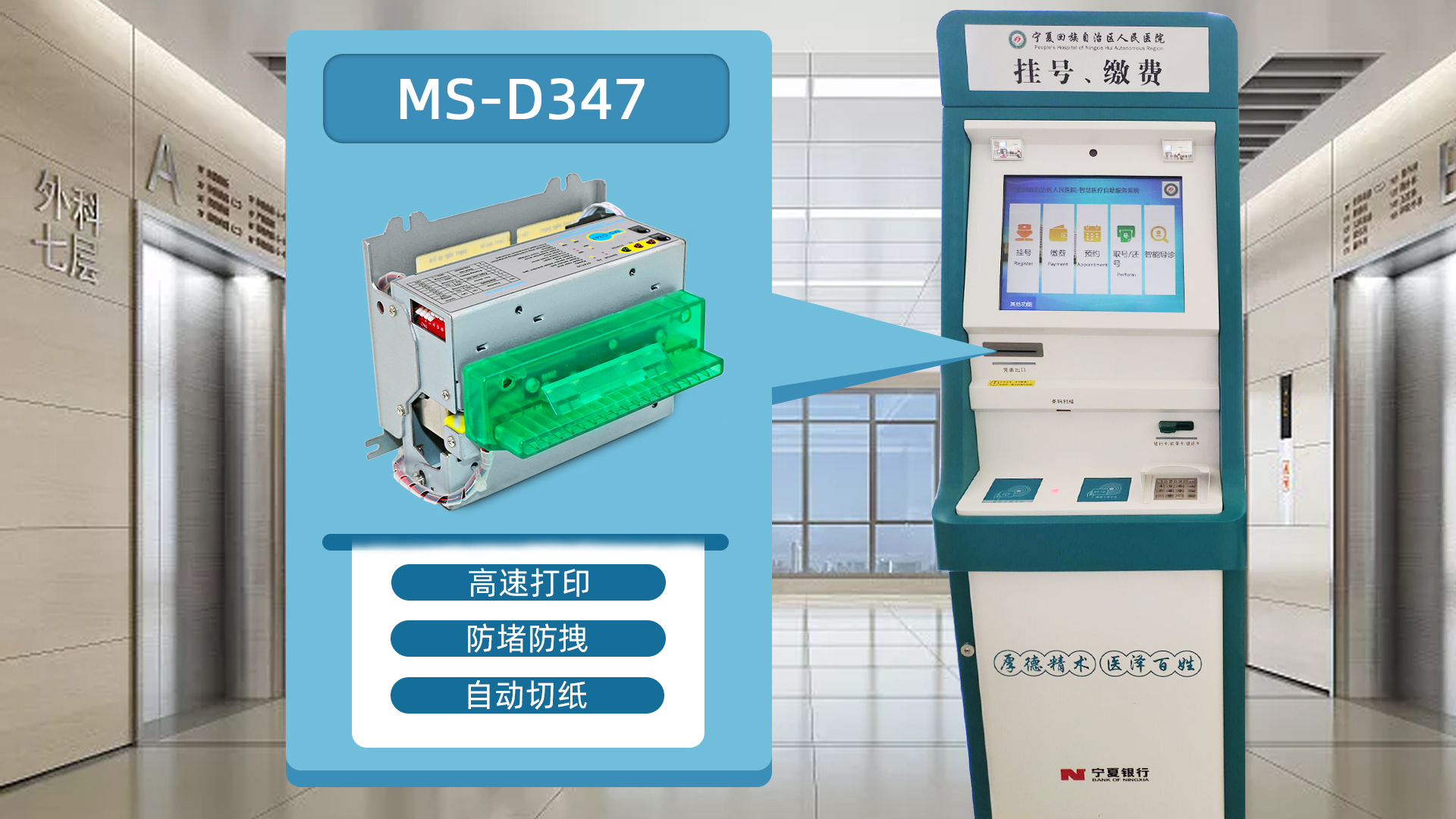 美松嵌入式打印機(jī)MS-D347打印機(jī)采用日本精工進(jìn)口機(jī)芯CAPD347,是結(jié)合本公司自主研發(fā)的D347打印控制板及鈑金結(jié)構(gòu)組合而成的80mm自動(dòng)切紙熱敏打印模組。它被嵌入安裝在醫(yī)院內(nèi)大廳、門(mén)診處,各科室樓層的自助機(jī)內(nèi),快速連續(xù)打印票據(jù)的功能大大縮短了患者排隊(duì)取號(hào)掛號(hào)、繳費(fèi)的等候時(shí)間,方便患者就醫(yī);它配有的防堵防拽專(zhuān)利技術(shù),遇到醫(yī)院高峰期,高強(qiáng)度連續(xù)打印也不會(huì)卡紙;打印機(jī)的軟件和硬件接口兼容,設(shè)計(jì)精巧,性能穩(wěn)定,支持不同設(shè)備定制化支架設(shè)計(jì),可嵌入在不同種類(lèi)的自助服務(wù)設(shè)備上;擁有自動(dòng)進(jìn)紙、自動(dòng)切紙、出紙檢測(cè)、黑標(biāo)檢測(cè)等功能,提升產(chǎn)品的安裝可靠性,讓終端用戶(hù)使用起來(lái)更簡(jiǎn)單流暢。MS-D347是一款嵌入式的80mm熱敏打印機(jī),具有高速打印,體型小巧的特點(diǎn)。